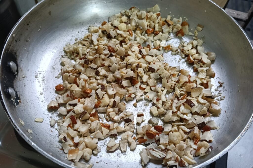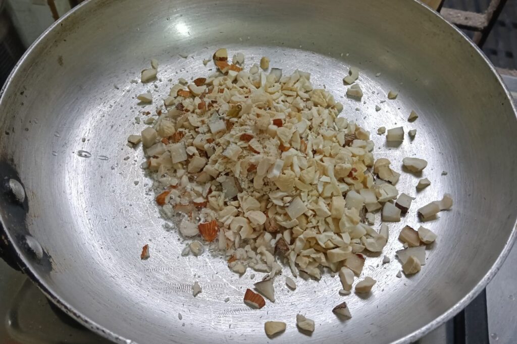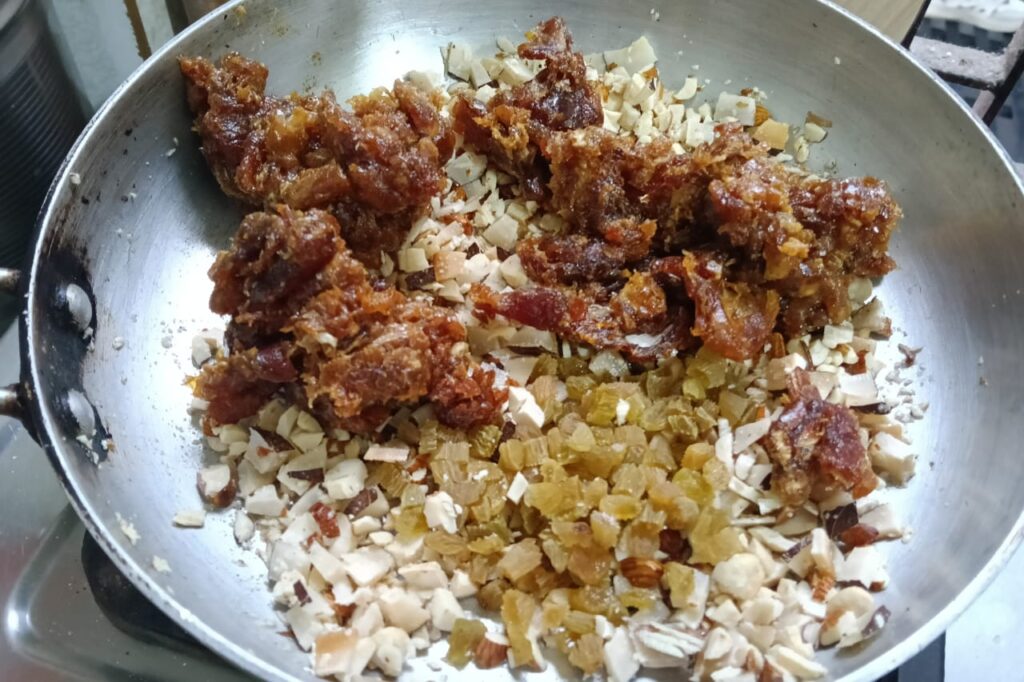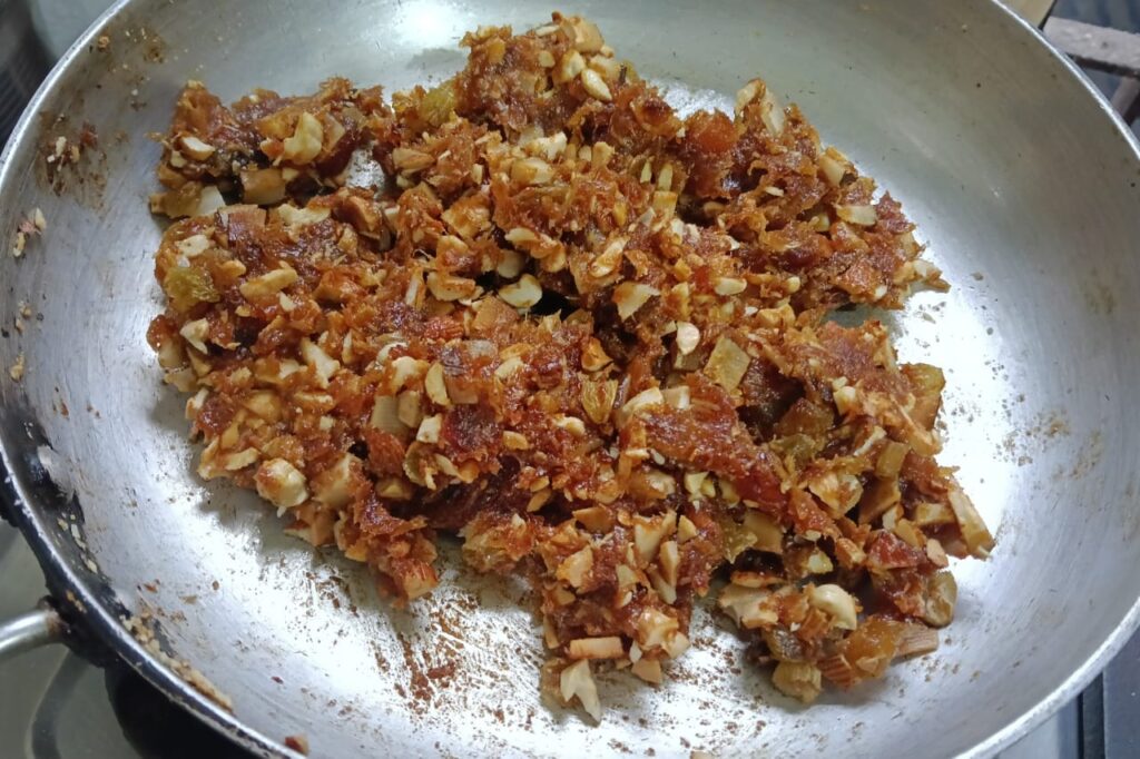 9. When the dates mix properly with nuts and dry fruits, turn off the flame.