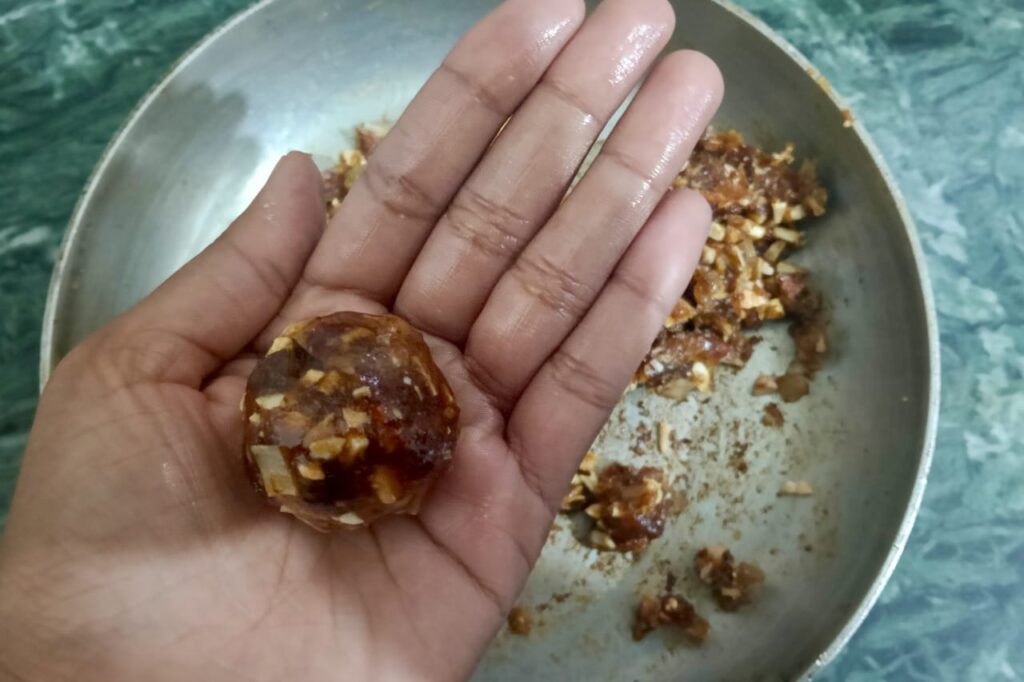 11. Shape all the rest one by one. The dates ladoo without sugar is ready to serve.