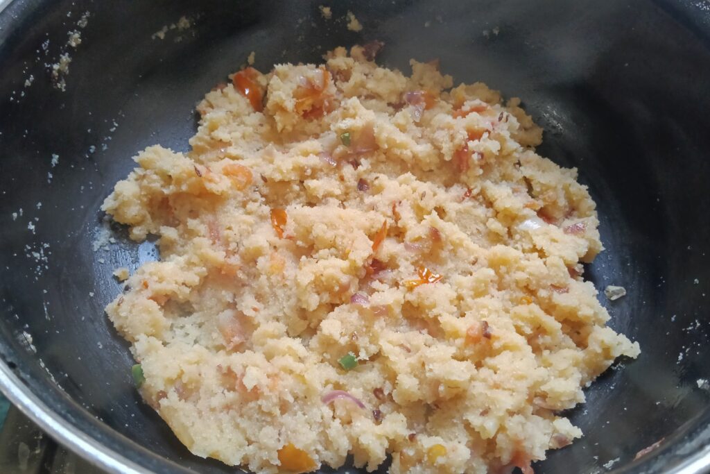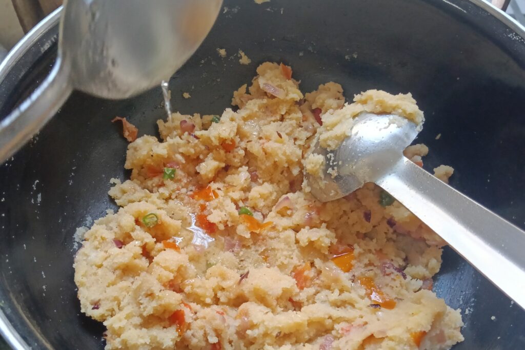- Water- It helps cook the rava and veggies into a perfect texture.